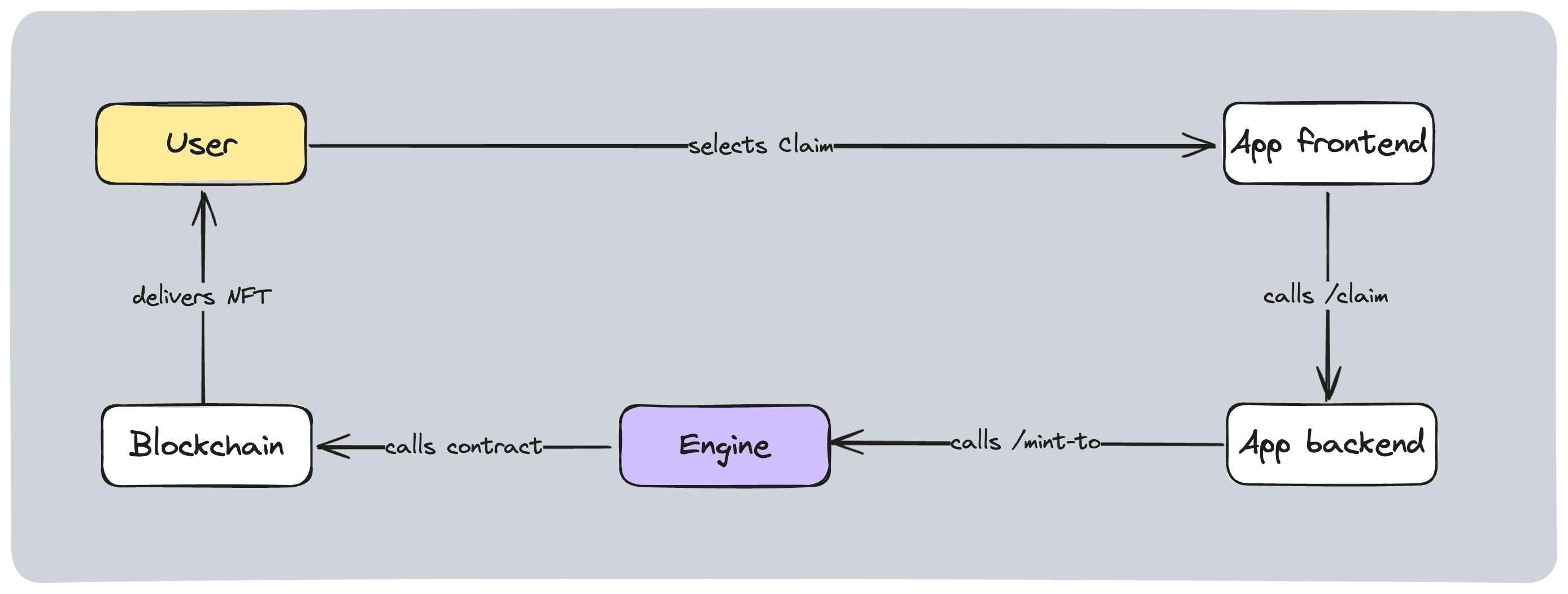 Engine makes it effortless for any developer to airdrop NFTs at scale. You sponsor the gas so your users only need a wallet address!
